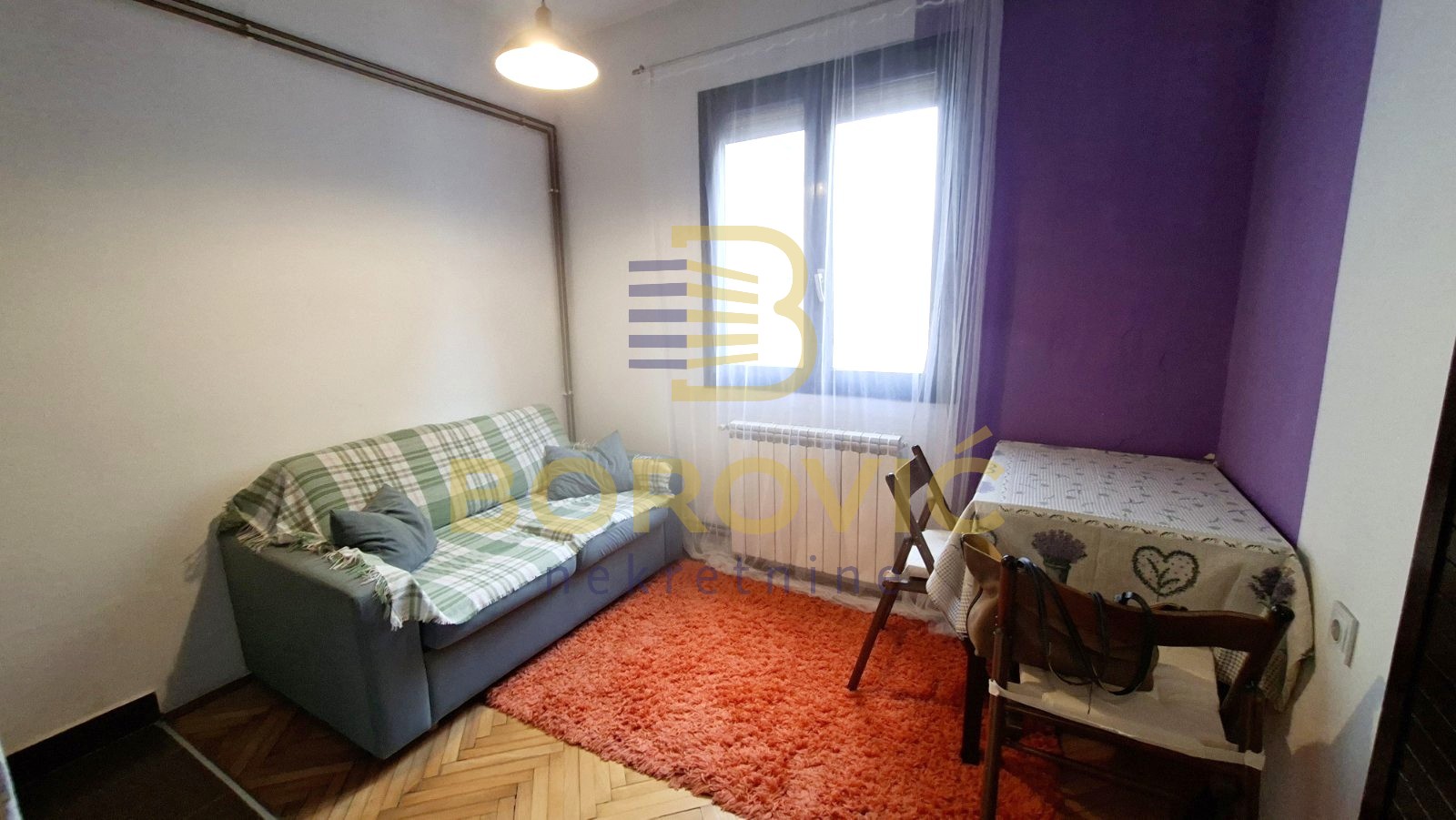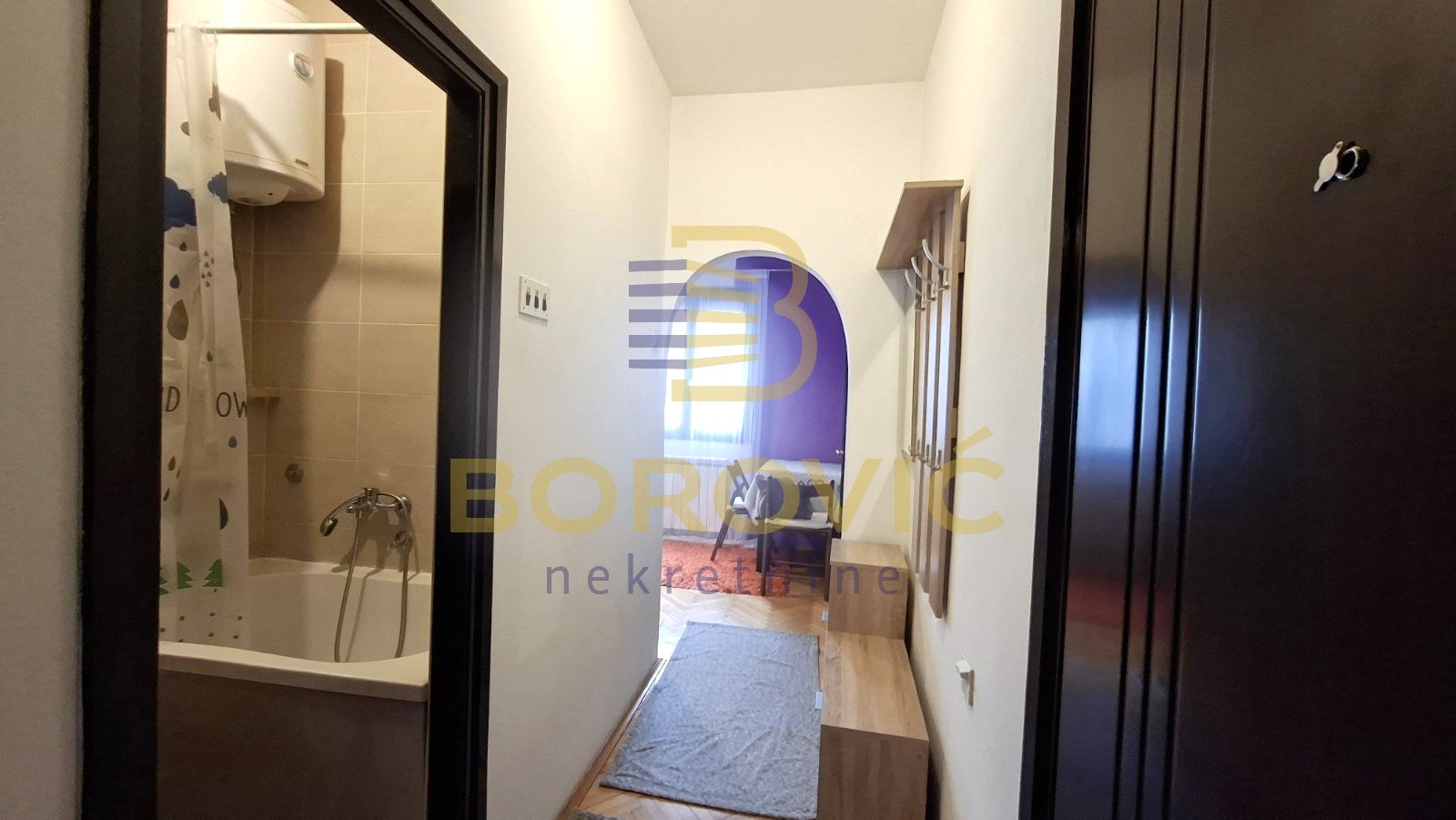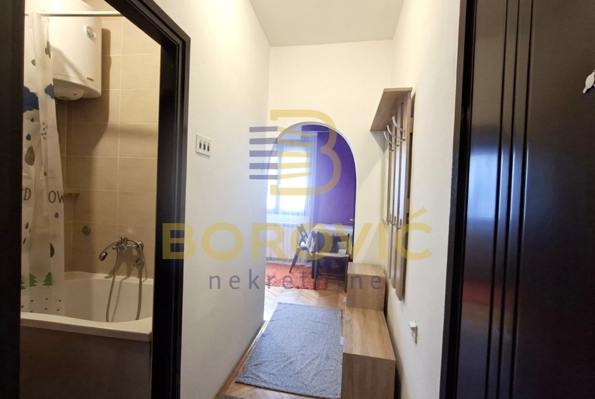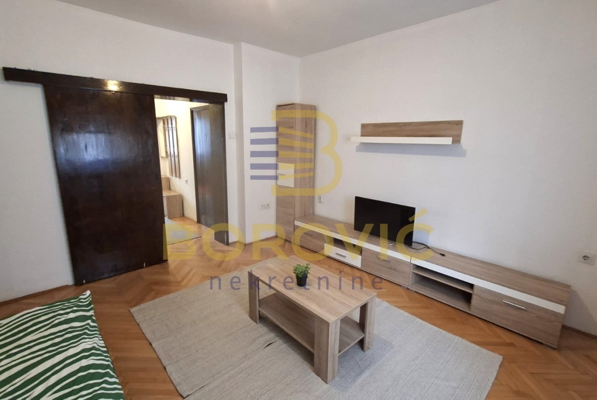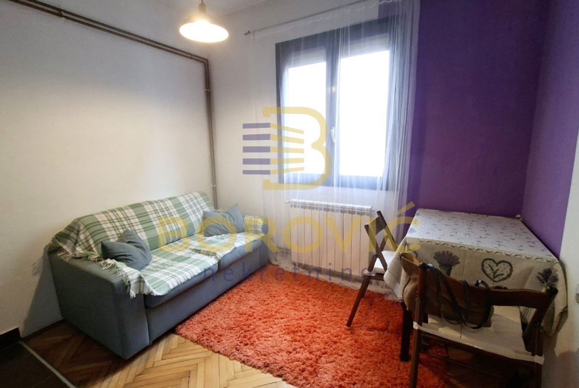 Stan se nalazi u mirnoj ulici na odličnoj lokaciji, u dvorišnom delu zgrade, što obezbeđuje zaštitu od saobraćajne buke i prijatan, tih ambijent za stanovanje. Funkcionalno je organizovan i prilagođen savremenom načinu života. Ulazni hodnik vodi ka dnevnoj sobi koja je nameštena i opremljena kaučem na razvlačenje, pogodnim za svakodnevno spavanje, dok se sa druge strane nalazi kuhinja sa trpezarijom. Iz hodnika se ulazi u kupatilo, koje je uredno i praktično.