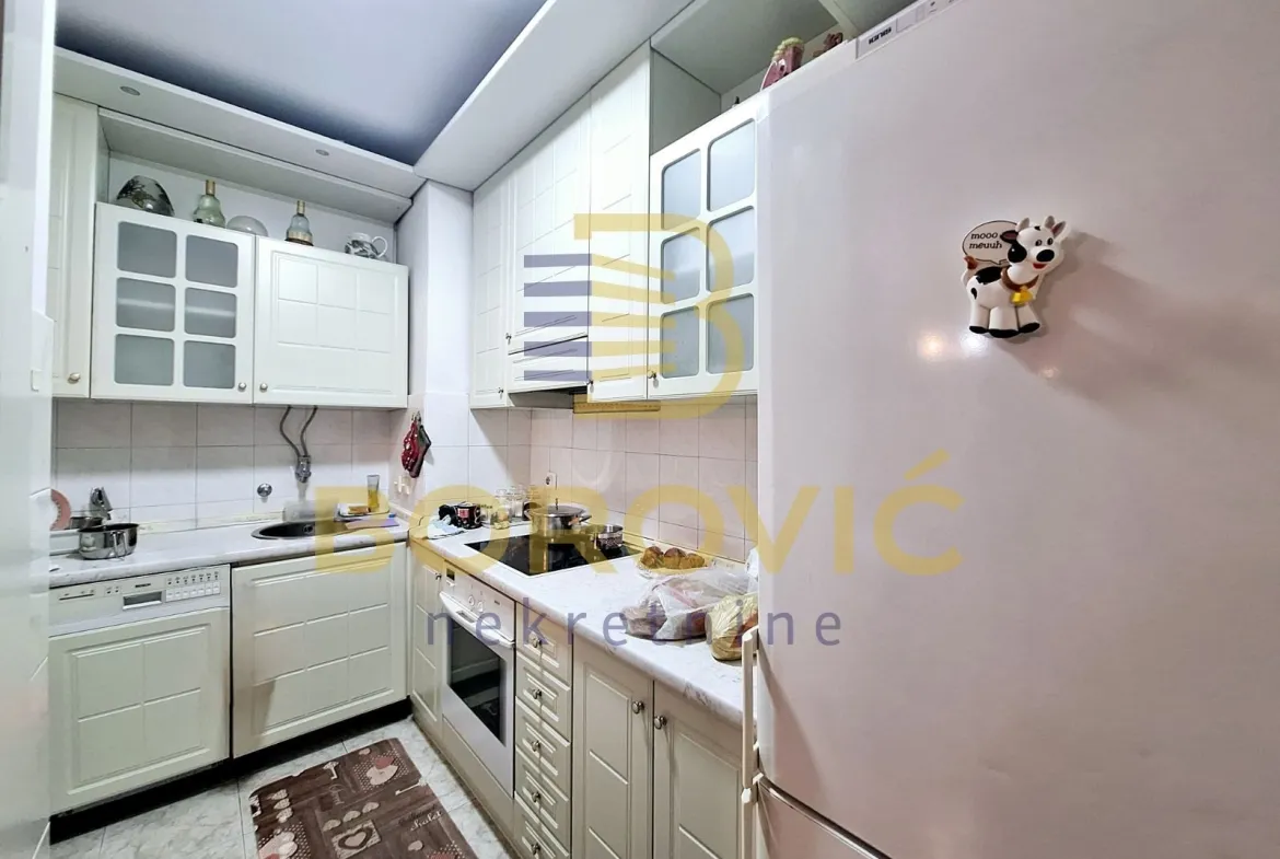 Unutrašnjost stana odiše funkcionalnošću i komforom, sa jasno definisanim celinama koje omogućavaju prijatan porodični život. Ulazni deo vodi ka prostranoj trpezariji koja se prirodno nadovezuje na poluodvojenu kuhinju opremljenu ugradnim elementima i svim neophodnim aparatima. Dnevni boravak je komforan i svetao, sa izlazom na zastakljenu terasu koja pruža dodatni prostor za uživanje i opuštanje tokom većeg dela godine.